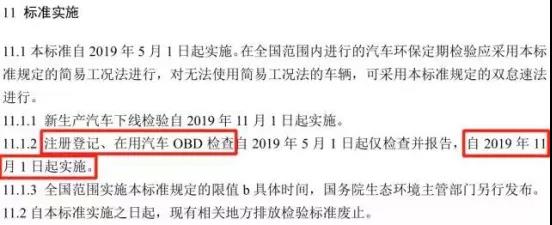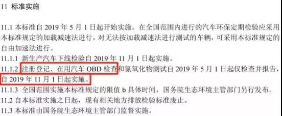 新標準由于修訂內(nèi)容較多,增加了OBD檢測等新內(nèi)容,因此標準實施采取分步走方式。