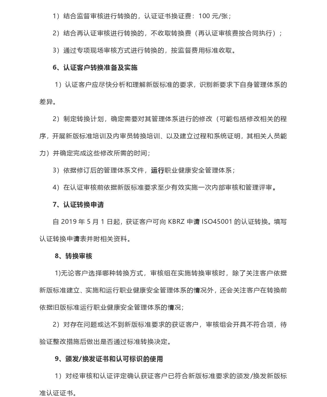 關(guān)于職業(yè)健康安全管理體系認證轉(zhuǎn)換公告
