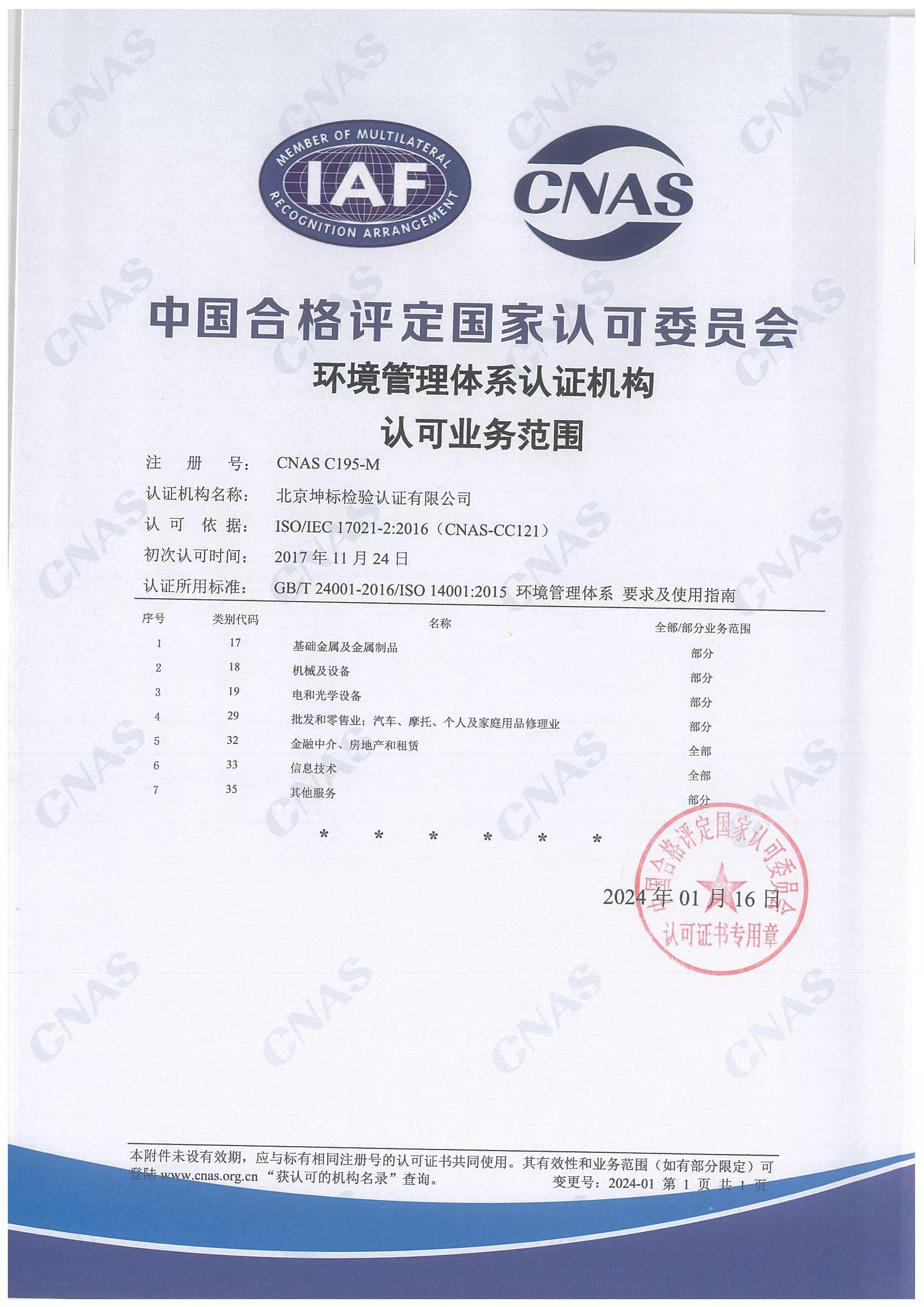 | QMS認可業(yè)務范圍(明細) | EMS認可業(yè)務范圍(明細) |